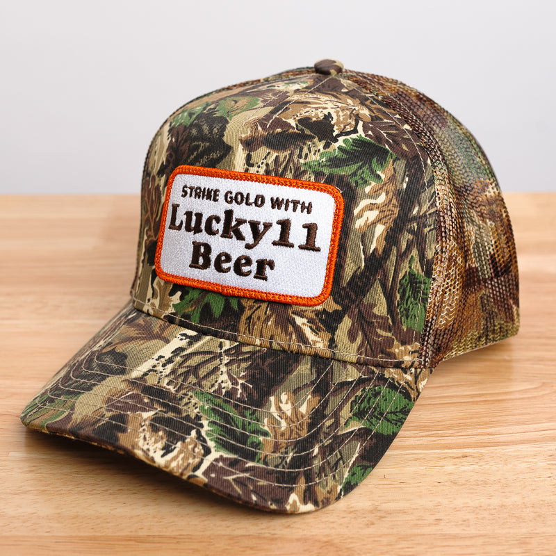 A durable camo trucker cap built for everyday wear with a structured five panel design, mid profile fit, Patch made in USA & breathable mesh back and an easy snapback adjuster.